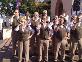 Umstädter Bauernmarkt Traditionell eröffnet der Umstädter Bürgermeister und unser Bläsercorps den Umstädter Bauernmarkt - das letzte mal 2019 vor Corona.Dieses Jahr 2022 haben wir wieder sehr gerne der Einladung zugesagt und werden die Eröffnung mit jagdlichen Klängen begleiten.Nach der Eröffnung besteht die Möglichkeit, in ungezwungender Atmosphäre mit den Bläsern ins Gespräch zu gehen und auch einmal selbst in ein - natürlich desinfiziertes - Jagdhorn zu blasen.